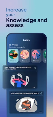 Aplikacja Self Therapy: Mental Tests to także przestrzeń relaksu i wsparcia. Skorzystaj z ponad 150 artykułów eksperckich na temat zdrowia psychicznego, dostępnych również w formie narracji audio, aby poszerzać swoją wiedzę w dogodny sposób. Unikalne 90-sekundowe narzędzie do zarządzania energią, wykorzystujące wizualizacje i animacje, pomoże Ci uwolnić się od negatywnych emocji i naładować pozytywną energią. Dodatkowo, zanurz się w kojących animacjach metaforycznych i relaksujących dźwiękach, które ukoją Twoje zmysły. Łącz się z innymi w naszej społeczności, dołączając do grup tematycznych, dzieląc się przemyśleniami i wspierając się nawzajem w podróży ku lepszemu samopoczuciu psychicznemu.